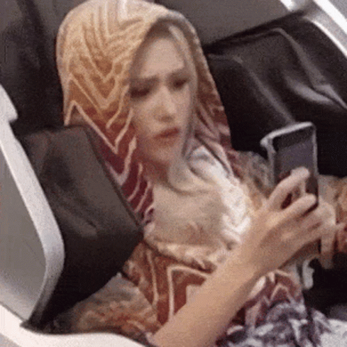 Paglalarawan ng Content: a woman in a hooded blanket is sitting in a chair looking at her cell phone .