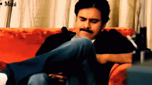 Paglalarawan ng Content: a man with a mustache is sitting on an orange couch and the word mani is on the bottom right
