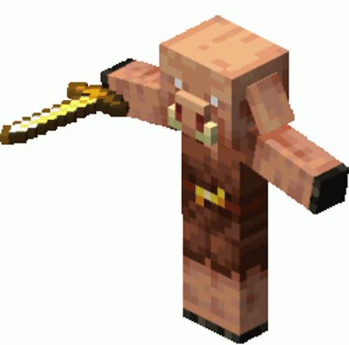 Paglalarawan ng Content: a minecraft pig is holding a gold sword in its right hand