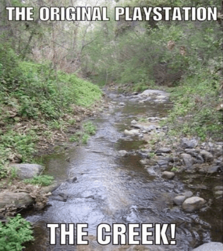 Paglalarawan ng Content: a river surrounded by trees and rocks with the caption " the creek "