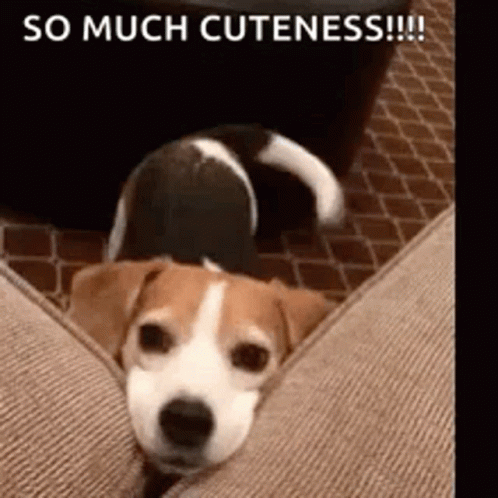 Paglalarawan ng Content: a brown and white dog is laying on a couch with the words `` so much cuteness '' written above it .