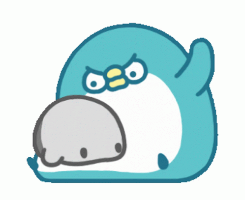 Paglalarawan ng Content: a blue penguin is holding a gray penguin with a yellow star on it 's head