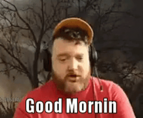 Paglalarawan ng Content: a man with a beard wearing headphones and a hat is saying good morning .
