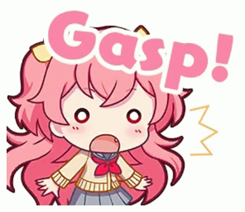 Paglalarawan ng Content: a cartoon girl with pink hair and the word gasp above her