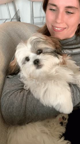 Paglalarawan ng Content: a woman is holding a small brown and white dog in her lap