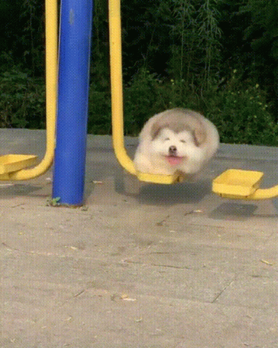 Paglalarawan ng Content: a small dog is sitting on a yellow and blue exercise machine .