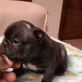 Paglalarawan ng Content: a small black puppy is being held in a person 's hand .