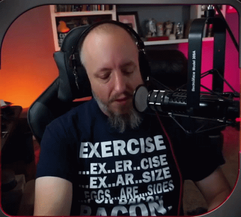 Paglalarawan ng Content: a man wearing headphones and a t-shirt that says exercise