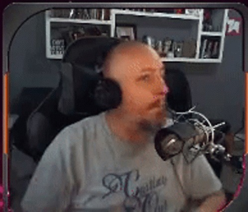 Paglalarawan ng Content: a man wearing headphones is sitting in front of a microphone and looking at the camera .