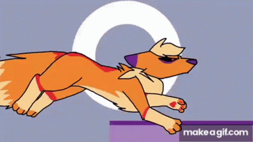Paglalarawan ng Content: a cartoon of a fox with a purple tail is running .