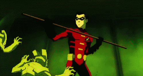Paglalarawan ng Content: a cartoon of robin holding a sword while fighting a green monster
