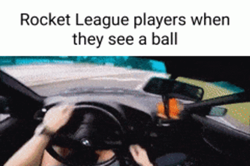 Paglalarawan ng Content: a man is driving a car with the words rocket league players when they see a ball below him