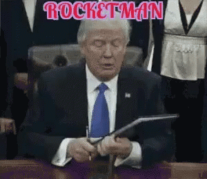 Paglalarawan ng Content: a man in a suit and tie is sitting at a table with his eyes closed and a sign that says rocketman