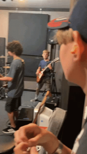 - Paglalarawan ng Content: a group of young men are playing instruments in a room and one of them is wearing a hat that says mlb