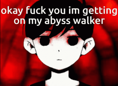 Paglalarawan ng Content: okay fuck you im getting on my abyss walker written over a picture of a boy