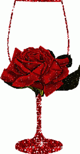Paglalarawan ng Content: a red rose is in a wine glass with glitter