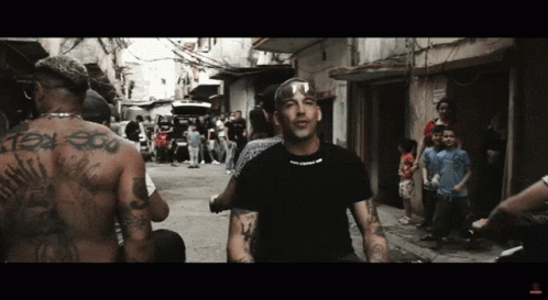 Paglalarawan ng Content: a man with a tattoo on his back stands in a crowded street