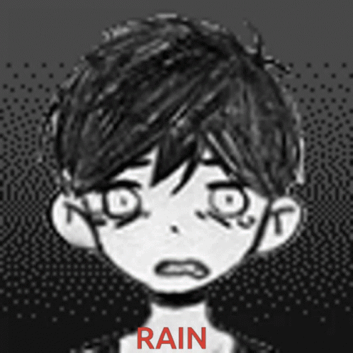 Paglalarawan ng Content: a black and white drawing of a boy with the word rain below it