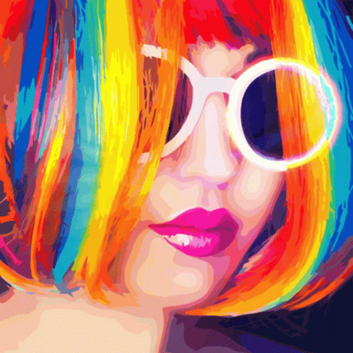 Paglalarawan ng Content: a painting of a woman with colorful hair wearing sunglasses