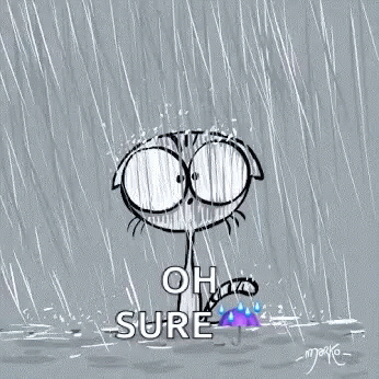 Paglalarawan ng Content: a cartoon cat is standing in the rain with an umbrella and says `` oh sure '' .