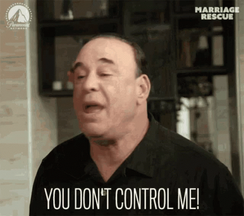 Paglalarawan ng Content: a man says " you don 't control me " in a marriage rescue ad