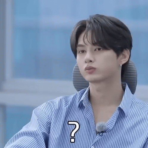 Paglalarawan ng Content: a young man wearing a blue and white striped shirt is making a funny face with a question mark .