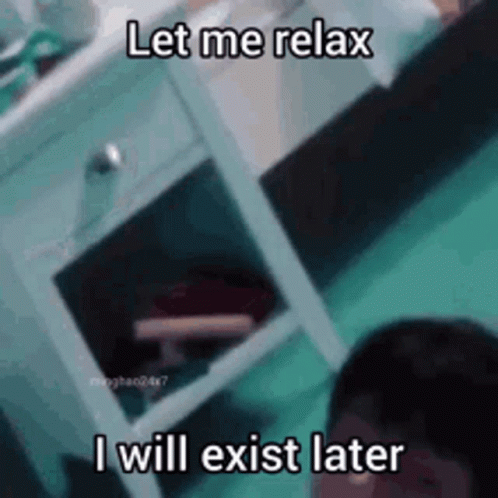 - Paglalarawan ng Content: a person is sitting in front of a nightstand with the words `` let me relax , i will exist later '' written on it .