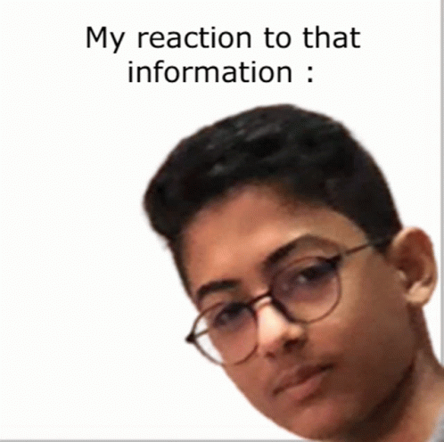 Paglalarawan ng Content: a young boy wearing glasses with the caption " my reaction to that information : "
