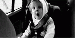 Paglalarawan ng Content: a baby is sitting in a car seat and making a funny face .