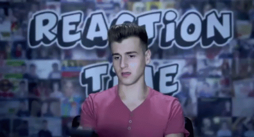 Paglalarawan ng Content: a man in a pink shirt is sitting in front of a sign that says reaction time