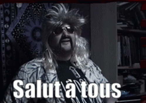 Paglalarawan ng Content: a man wearing a wig and sunglasses says " salut a tous "