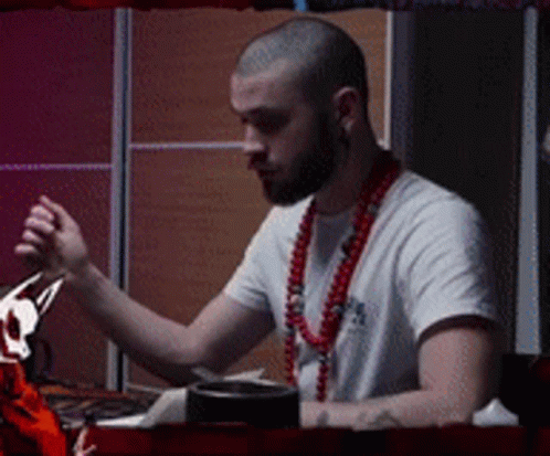 Paglalarawan ng Content: a man wearing a white shirt and a red necklace