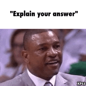 Paglalarawan ng Content: a man in a suit and tie is saying `` explain your answer '' while sitting in a crowd .