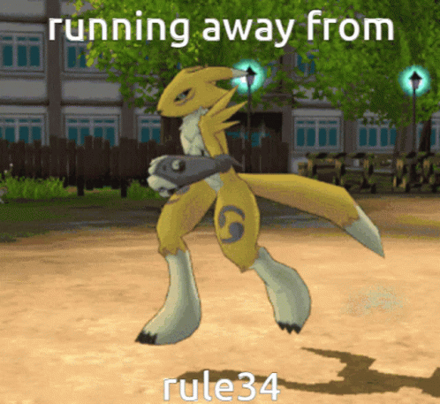 Paglalarawan ng Content: a cartoon fox is running away from rule 34