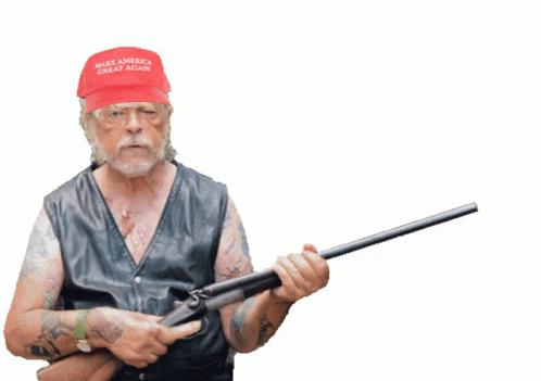 Paglalarawan ng Content: a man wearing a make america great again hat holds a shotgun