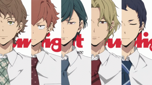 Paglalarawan ng Content: a group of anime characters standing next to each other with the word wig on the bottom left