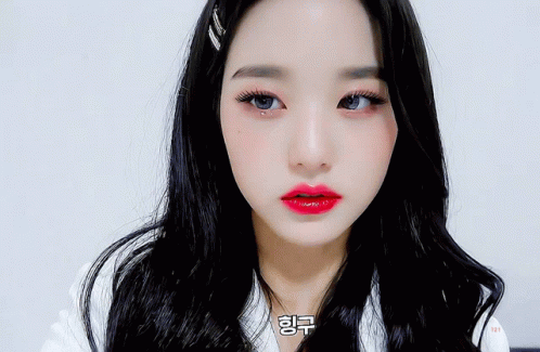 Paglalarawan ng Content: a close up of a woman 's face with korean writing on the bottom left