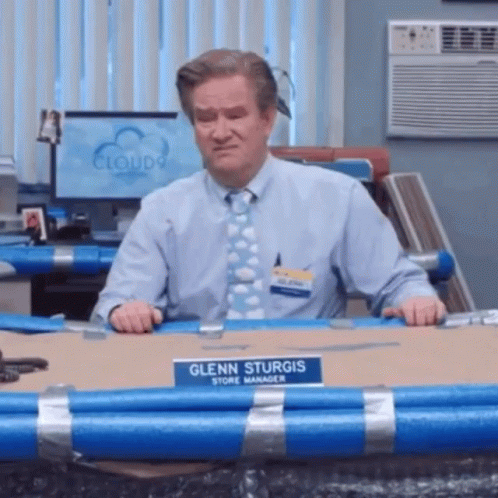 Paglalarawan ng Content: a store manager named glenn sturgis sits behind a counter