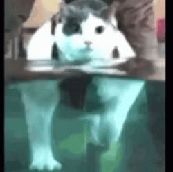 Paglalarawan ng Content: a black and white cat is swimming in a pool .