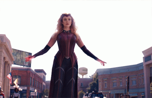 Paglalarawan ng Content: a woman in a red dress is standing in front of a water tower that says water