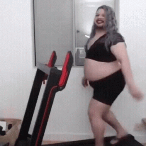 Paglalarawan ng Content: a very fat woman is walking on a treadmill in a room .