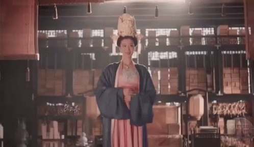 Paglalarawan ng Content: a woman in a traditional costume is standing in a warehouse .