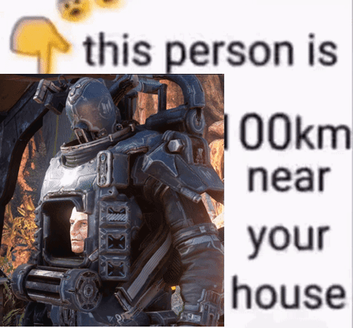 Paglalarawan ng Content: a picture of a robot with the words this person is 100km near your house on the bottom