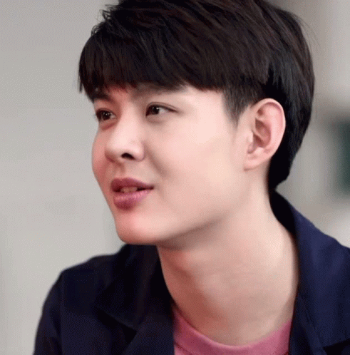 Paglalarawan ng Content: a close up of a young man 's face with a pink shirt on .