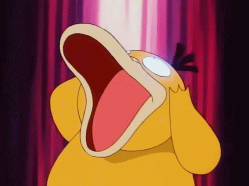 Paglalarawan ng Content: a cartoon duck with its mouth wide open and its tongue hanging out .
