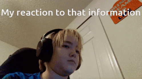 Paglalarawan ng Content: a young boy wearing headphones with the words " my reaction to that information " above him