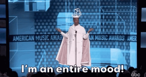 Paglalarawan ng Content: a man in a white coat and crown is standing in front of a microphone at an american music awards .