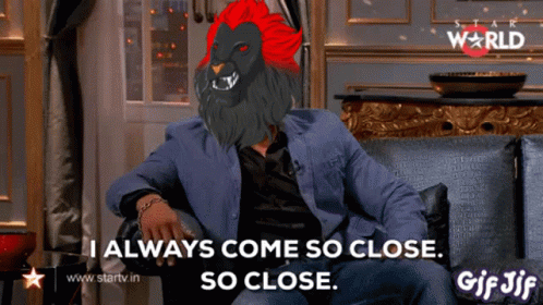 Paglalarawan ng Content: a gif of a man sitting on a couch with the words " i always come so close "