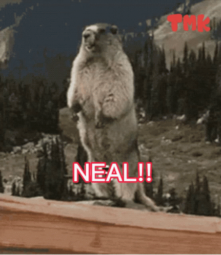 Paglalarawan ng Content: a squirrel standing on its hind legs with the word neal in red letters