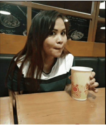 Paglalarawan ng Content: a woman is sitting at a table holding a cup